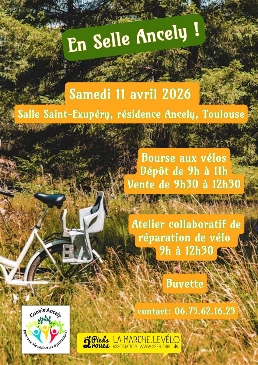 Accueil > L’asso > Toulouse par quartiers > Quartier 20 - Arènes Romaines / Ancely / Saint-Martin du Touch/Purpan > En Selle Ancely : bourse aux vélos et atelier d’auto-réparation vélo le 11 (…)